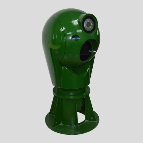 自動跟蹤球型光電轉臺攝像機采用陀螺穩定超強抗風轉臺、低照度高清透霧攝像機、高清透霧鏡頭、熱成像儀,軍用大功率激光器(選用),通過科學、先進的手段集合而成,具有背景反差好、成像清晰、使用高分辨率低照度彩轉黑攝像機,可進行晝夜對目標的識別、監測、手動鎖定、自動追蹤、測向預判,將視頻畫面傳回機房及指揮中心(總部),可以拉遠拉近看,以便領導做出決策,如拉警號預警將人員疏散或者藏進防空洞等,但不擊打及干預目標物。